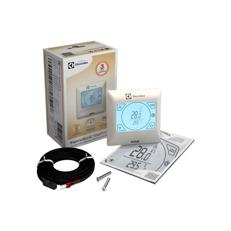 Термостат комплектуется датчиком температуры пола с длиной кабеля 3 м.