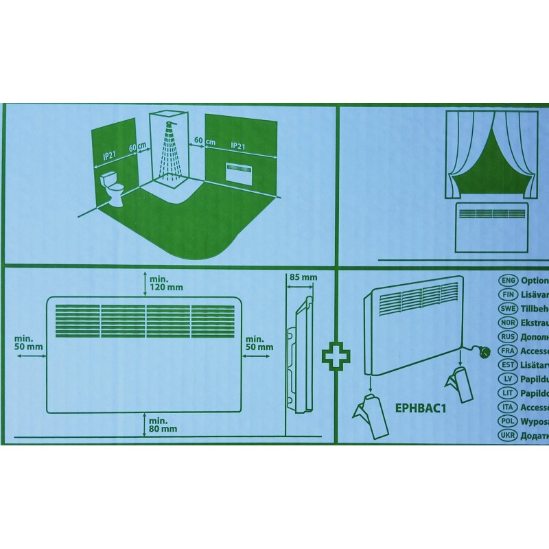 Конвекторы Ensto крепятся на стену при помощи кронштейна(входит в комплект).