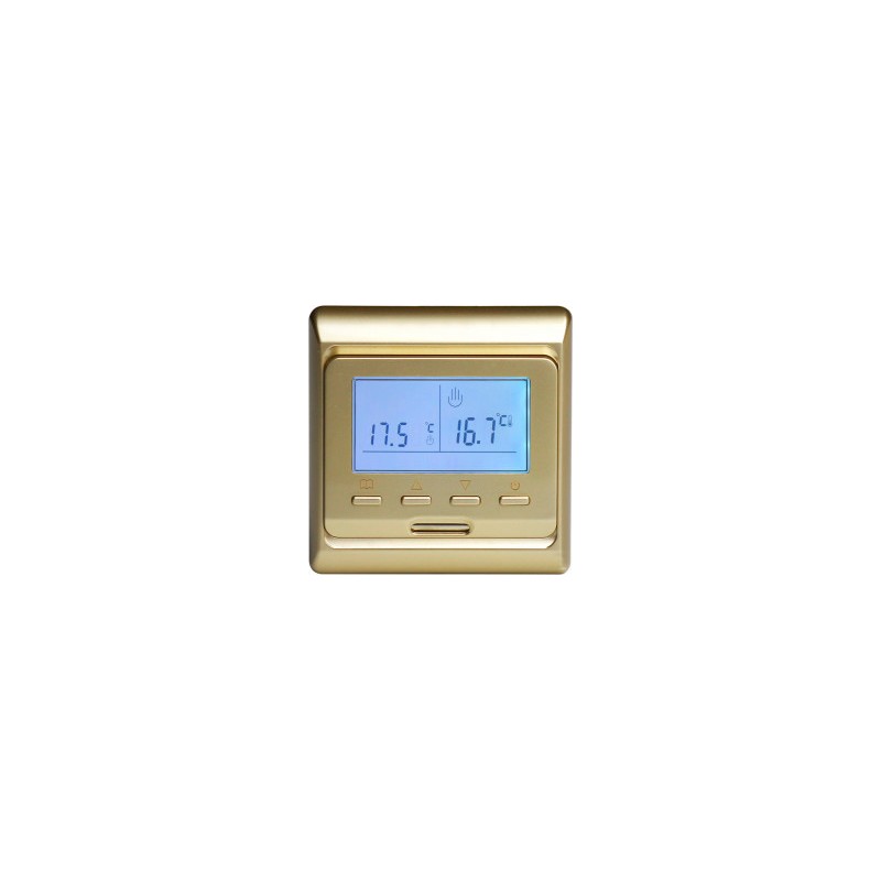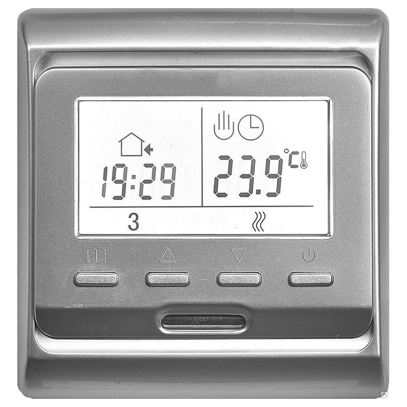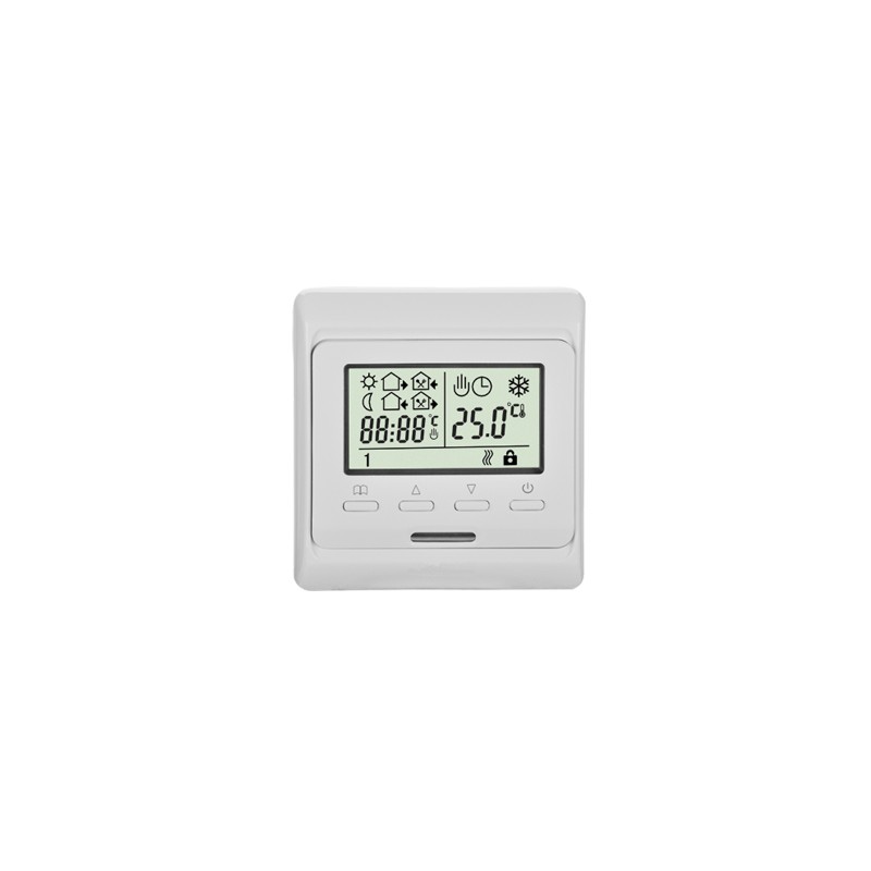 Программируемый регулятор с датчиком температуры пола и воздуха, белая подсветка, автономная работа встроенных часов.