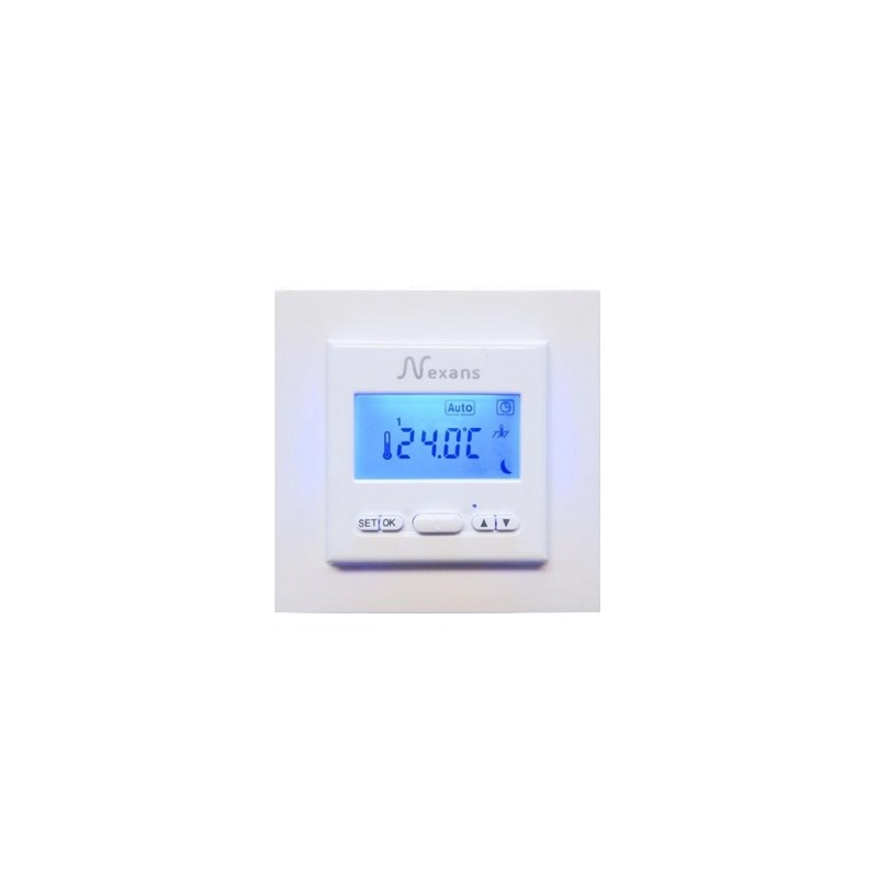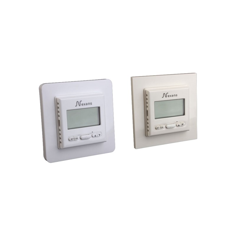Программируемый терморегулятор Nexans N-Comfort TD сконфигурирован для управления температурой в жилых помещениях благодаря вмонтированному воздушному датчику, который также может служить для контроля температуры через внешний проводной датчик пола.